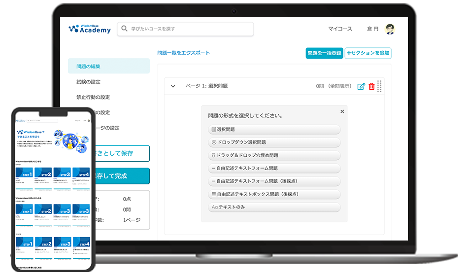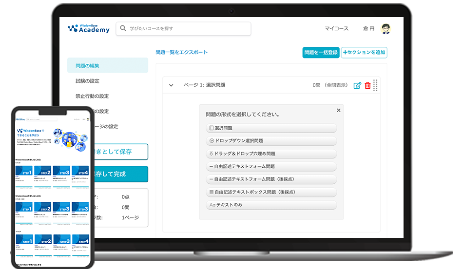 WisdomBaseは、直感的な操作でかんたんに試験問題を作成できます。