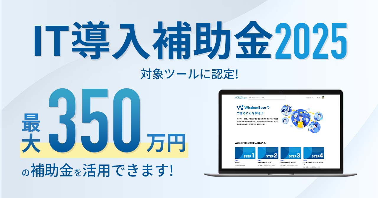 WisdomBaseはIT導入補助金対象ツールです。IT導入補助金を活用すると、費用の3割程度の負担額でWisdomBaseを導入いただけます。
