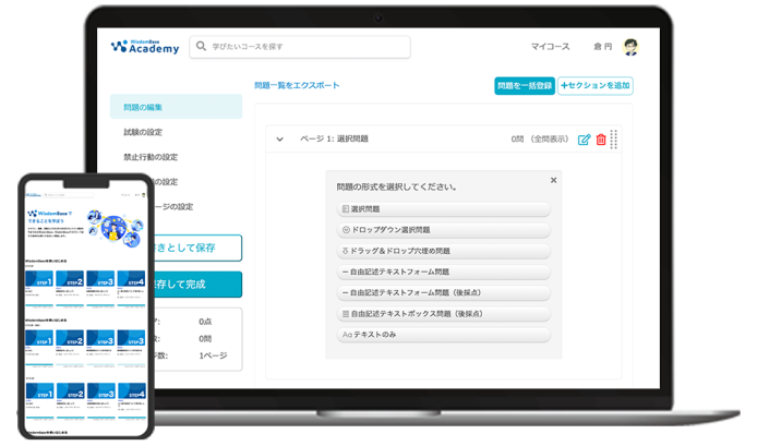 WisdomBaseは、直感的な操作でかんたんにテスト問題を作成できます。