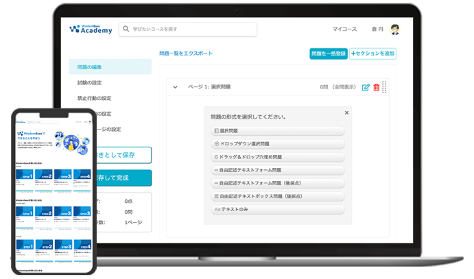 WisdomBaseは、直感的な操作でかんたんに試験問題を作成できます。